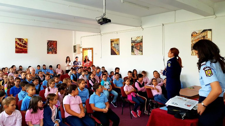 Cei trei reperezentanți le-au vorbit copiilor despre siguranța la școală, acasă și pe stradă în scopul prevenirii vicitimizării minorilor. Le-au fost prezentate semne de circulație și reguli pe care trebuie să le respecte atunci când traversează strada, atât ca pietoni, cât și atunci când sunt pe bicicletă. Un mare accent a fost pus pe modul de relaționare a minorilor cu persoanele necunoscute. Aceștia au fost sfătuiți să nu intre pe rețelele de socializare decât supravegheați de părinți. Să stabilească împreună cu aceștia parole pentru a preveni posibilitatea de a fi influențați de catre persoane care doresc să le facă rău.