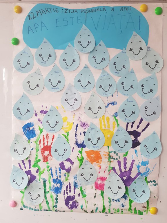 Școlarii mici au vizionat materiale video, au purtat discuții despre importanța apei în viața de zi cu zi a tuturor, au ascultat „povestea apei și a stropilor de ploaie”, au realizat lucrări artistico – plastice ilustrând apa, în diferite stări, au scris bilete de mulțumire apei pentru toate beneficiile aduse, au desenat circuitul apei în natură, vietăți acvatice, dar și ”emoțiile” apei în diverse situații. Ne dorim ca aceste „emoții” să fie doar de bucurie și fericire, prilejuite de faptele bune ale oamenilor și implicarea tuturor în combaterea poluării apei.