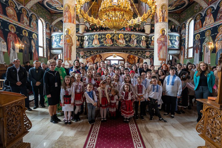 Duminica intrării Domnului în Ierusalim (Sărbătoarea Floriilor) a fost cu adevărat specială pentru credincioșii Parohiei Ortodoxe Duminica Sfinților Români, Sânmartin II. Ziua Târgului de Paști, pentru care copiii și coordonatorii s-au pregătit și au muncit timp de șapte săptămâni, a sosit! După zilele mohorâte și neobișnuite care au precedat Sărbătoarea Floriilor natura parcă s-a îndurat de copilașii minunați îmbrăcați în straie populare care repetau priceasna pe scările bisericii și a trimis Soarele. Un soare cald și blând, care ne-a mângăiat fețele și sufletele ca un părinte iubitor. După Sfânta și Dumnezeiasca Liturghie copiii au cântat priceasna Blândul păstor alături de invitata specială, artista de muzică populară, Corina Szatmari.După momentul înălțător în care a cântat alături de copii, doamna Corina Szatmari ne-a onorat și emoționat până la lacrimi cu două pricesne din repertoriul propriu.După poza de grup toată lumea a fost invitată la demisol să admire obiectele realizate, să guste prăjiturile delicioase de post pregătite de mame și să sprijine financiar proiectul achiziționând obiectele preferate. Pe mesele acoperite cu fețe tradiționale au fost așezate frumos mai mult de 80 de icoane pe sticlă, peste 100 de vaze realizate cu tehnica decoupage, tablouri stil vitralii, coronițe de agățat, diverse decorațiuni unicate pentru masa de Paște, cruci împletite manual. În fiecare duminică seara, după cateheza susținută de părintele paroh Lucian Gîga și doamna profesoară de religie Emanuela Țăran, copiii au fost ghidați în realizarea creațiilor unicate de către artista Amalia Ichim și prof. Anca Haidu. Alături, le-au fost și i-au sprijinit neîncetat mamele celor aproximativ 50 de copii prezenți în fiecare seară, fotografa Gavrilaș Cosmina și pizzeria Sesto Senso.
