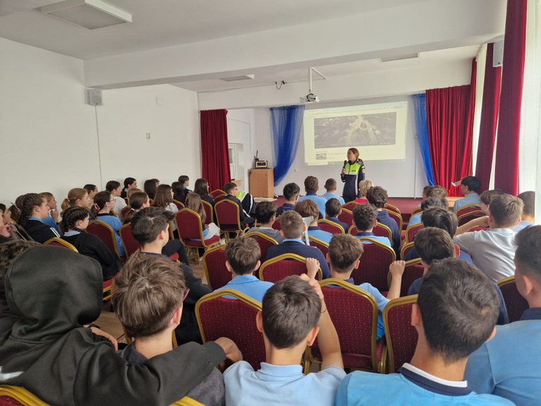 Elevii claselor a IV-a, a VI-a B, a VII-a B și a VII-a C au participat joi, 15 mai 2025, la activități interactive de educație rutieră, organizate de specialiști din cadrul Inspectoratului Județean de Poliție Bihor în cadrul Săptămânii nationale a siguranței rutiere.