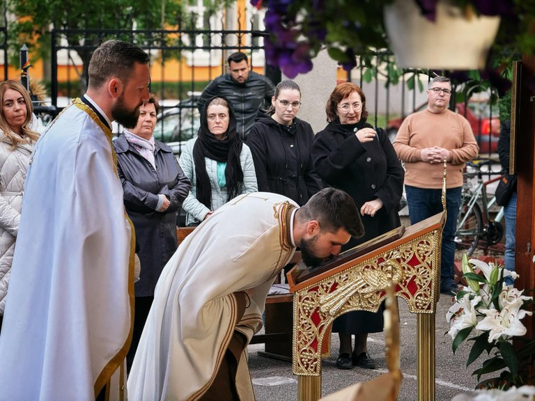 În cuvântul rostit în cadrul Sfintei Liturghii, părintele Laurențiu-Florin Brîndaș a transmis arhiereștile binecuvântări ale Preasfințitului Părinte Sofronie, Episcopul Oradiei, evidențiind totodată și importanța implicării tinerilor în viața Bisericii și necesitatea păstrării entuziasmului specific vârstei, în armonie cu experiența și înțelepciunea celor maturi. De asemenea, a subliniat semnificația profundă a acestei întâlniri, arătând că prezența comună a tinerilor și a militarilor, sub ocrotirea aceluiași sfânt, constituie o mărturisire vie a faptului că adevărata biruință nu este doar una exterioară, ci mai ales una lăuntrică – biruința credinței asupra fricii, a binelui asupra răului și a unității asupra dezbinării, iar atunci când generațiile și vocațiile se întâlnesc în Hristos, se naște o comunitate puternică și capabilă să răspundă provocărilor lumii contemporane.