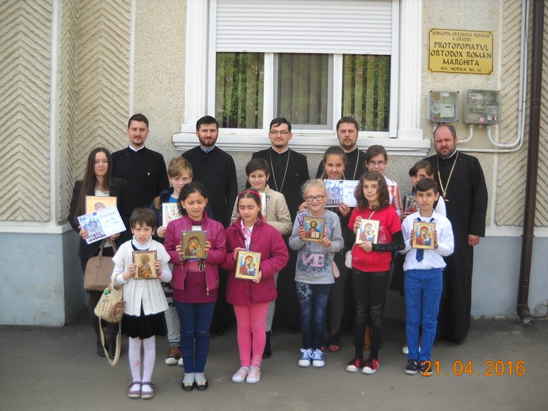 A urmat, în ziua de joi, 21 aprilie 2016 festivitatea de premiere a participanților la nivel de protopopiat, în cadrul căreia Părintele Călin-Gheorghe Cotrău, Protopopul Marghitei, a adus mulțumiri și felicitări tuturor participanților implicați pentru frumoasele rezultate și munca depusă.