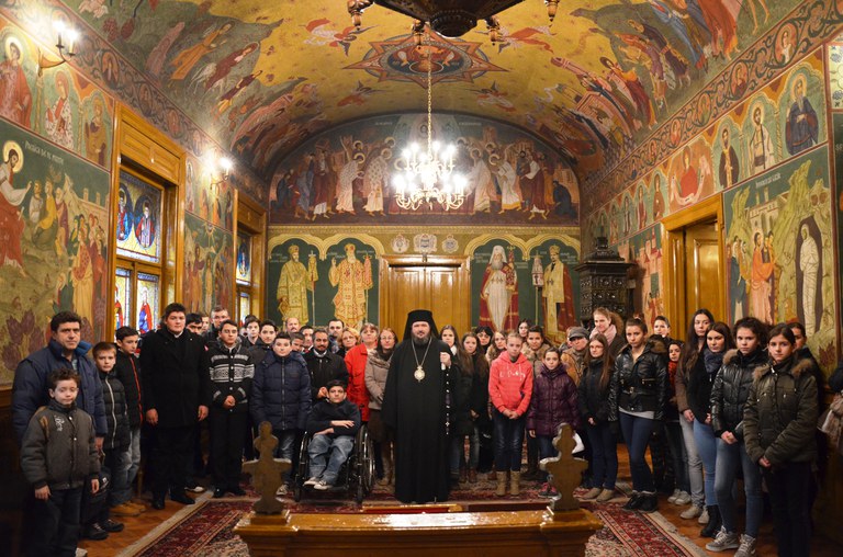 Elevii şi studenţii bursieri, însoţiţi de părinţi şi de cadre didactice, au fost primiţi de către Preasfinţitul Părinte Sofronie, Episcopul Oradiei, în paraclisul de la Centrul Eparhial. Festivitatea a început printr-un moment de rugăciune, rostirea rugăciunii „Tatăl nostru”, după care Ierarhul a prezentat paraclisul şi a vorbit despre istoria Eparhiei Oradiei şi a Palatului Episcopal. Totodată, a ţinut să sublinieze importanta lucrare social-filantropică ce se desfăşoară la nivel eparhial, prin diversele şi numeroasele activităţi, între care se numără şi Bursele Filantropia: „Acţiunile Asociaţiei „Filantropia” nu sunt spectaculoase, dar sunt foarte eficiente. Ele aduc bucurie şi mângâiere oamenilor. Aşa se întâmplă şi acum, la o zi după sărbătorirea Sfântului Stelian Paflagonul, ocrotitorul copiilor şi al familiei, pe care îl avem reprezentat în acest paraclis într-un frumos vitraliu, când „Filantropia” orădeană ne oferă plăcuta ocazie de a ne întâlni cu cei patruzeci de bursieri, copii şi tineri, ai asociaţiei. Poate că nu pare mult, dar este, cu siguranţă, un strop de normalitate, o rază de speranţă şi un crâmpei de lumină pentru toţi cei patruzeci de bursieri, şi nu este puţin. Mulţumim lui Dumnezeu pentru acest moment binecuvântat şi tuturor sponsorilor, care au făcut cu putinţă ca proiectul Bursele Filantropia să se materializeze.”