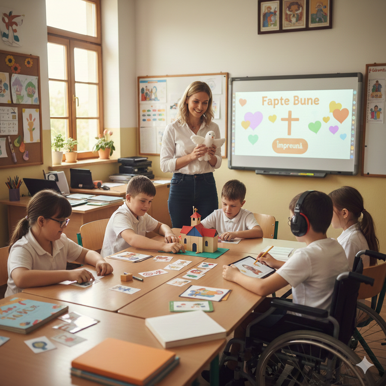 Cea mai dinamică parte a fost secvența în care profesorii au împărtășit studii de caz și exemple de bune practici. S-a pus accentul pe utilizarea pedagogiei digitale ca instrument de facilitare. S-a insistat de asemenea pe utilizarea intensivă a resurselor vizuale (planșe, filme scurte, prezentări multimedia) pentru a sprijini înțelegerea, integrarea unor scurte scenete sau jocuri de rol bazate pe pilde biblice, oferind elevilor cu CES oportunitatea de a se exprima și de a interacționa în siguranță.