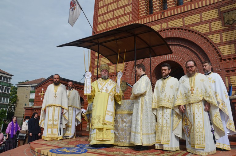 La împlinirea a doi ani și patru zile de la târnosirea bisericii cu hramurile Sfântul Apostol Andrei și Duminica Sfinților Români din Oradea, ce a avut loc în Duminica a doua după Rusalii, 10 iunie 2018, în Duminica întâi după Rusalii, a Tuturor Sfinților, 14 iunie 2020, Preasfințitul Părinte Sofronie, Episcopul Oradiei s-a aflat la frumoasa biserică orădeană, săvârșind Sfânta Liturghie arhierească, împreună cu un sobor de ieromonahi, preoți și diaconi, în fața sfântului lăcaș, numeroși credincioși orădeni venind să aducă cinstire Tuturor Sfinților, respectându-se îndrumările bisericeşti pentru starea de alertă ale Patriarhiei Române.