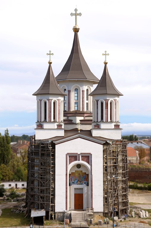 Prin grija permanentă a Preasfinţitului Părinte Sofronie, lucrările la noua Catedrală Episcopală din Oradea, aflată în construcţie din anul 1995, continuă într-un ritm susţinut. După ce la începutul lunii aprilie a acestui an au fost montate geamurile catedralei şi uşile de la intrare, din lemn masiv, copie după uşile catedralei „Sfânta Sofia” din Constantinopol, iar deasupra icoanei în mozaic reprezentând Învierea Domnului de pe faţadă, copie după originalul de la Mănăstirea „Nea Moni” din Grecia, a fost pus un frumos vitraliu cu monograma Mântuitorului Iisus Hristos, în exterior se află în plină desfăşurare lucrările de placare a catedralei cu marmură roşie şi piatră de Podeni. De asemenea, în interior, catedrala este tencuită, pregătită pentru pictură, fiind montat un iconostas provizoriu, din fier forjat, în care s-au pus icoane pictate în atelierele de pictură de la Mănăstirea Izbuc, din Eparhia Oradiei.