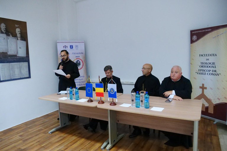 Prima parte a conferinței s-a desfășurat în paraclisul cu hramul „Sfântul Cuvios Teodor Studitul” al Facultăţii de Teologie Ortodoxă „Episcop Dr. Vasile Coman”, unde a fost săvârșită Sfânta Liturghie și slujba de Te Deum, după care invitații s-au îndreptat spre Sala de conferințe a Bibliotecii Universității din Oradea, unde a debutat partea a doua a manifestării dedicată prezentării referatului întocmit de către Diac.prof. Sorin Paina.