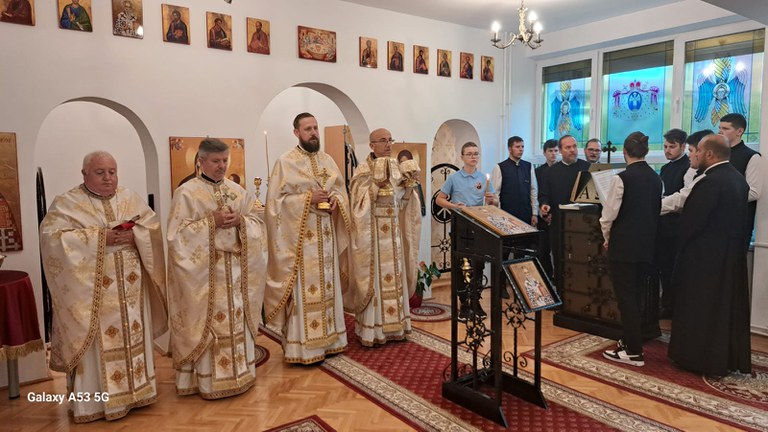 Prima parte a întâlnirii a avut loc în paraclisul cu hramul Sfântul Apostol Iacov, rudenia Domnului, sfințit de către Preasfințitul Părinte Sofronie în Duminica după Înălțarea Sfintei Cruci, unde, începând cu ora 8:00, cadrele didactice care predau Religie Ortodoxă, respectiv profesorii de Teologie de la Facultatea de Teologie Ortodoxă „Episcop Dr. Vasile Coman” din Oradea au participat la Sfânta Liturghie și la slujba de Te Deum, săvârșite de către Preacucernicul Părinte Prot. Prof. Radu Rus, Vicar eparhial și directorul Liceului Ortodox, împreună cu Preacucernicul Părinte Laurențiu Brîndaș, Consilier pentru cateheză și activități cu tineretul, cu Preacucernicul Părinte Conf. Univ. Dr. Viorel Popa, Decanul Facultății de Teologie Ortodoxă „Episcop Dr. Vasile Coman” din Oradea și cu Preacucernicul Părinte Prof. Florin Negruțiu, Inspector școlar pentru disciplina Religie.