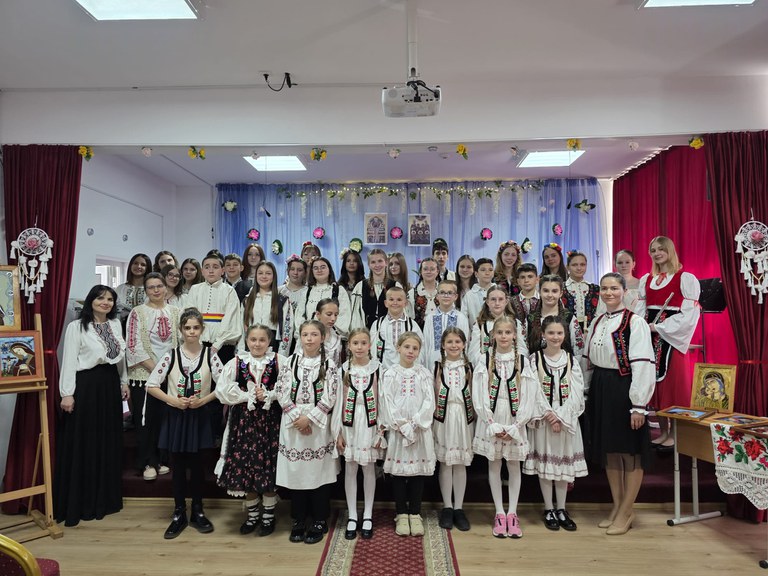 Întregul spectacol s-a desfășurat ca o țesătură armonioasă de momente artistice, în care copilăria, emoția și credința s-au întâlnit firesc. Cei mai mici dintre elevi au adus în fața publicului curăția sufletului prin pricesne închinate Maicii Domnului și prin cântece dedicate mamelor – acele prezențe tăcute, dar esențiale, care dau sens vieții de zi cu zi.