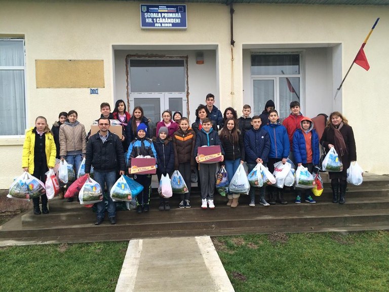 „Înarmaţi” cu cadourile pregătite, a doua zi după reînceperea şcolii, marţi, 12 ianuarie 2016, elevii cu suflet mare, însoţiţi de diriginţii lor şi de câţiva părinţi, s-au prezentat la faţa locului, școala din Cărăndeni, pentru a le oferi cele pregătite şi pentru a le face ziua mai frumoasă.