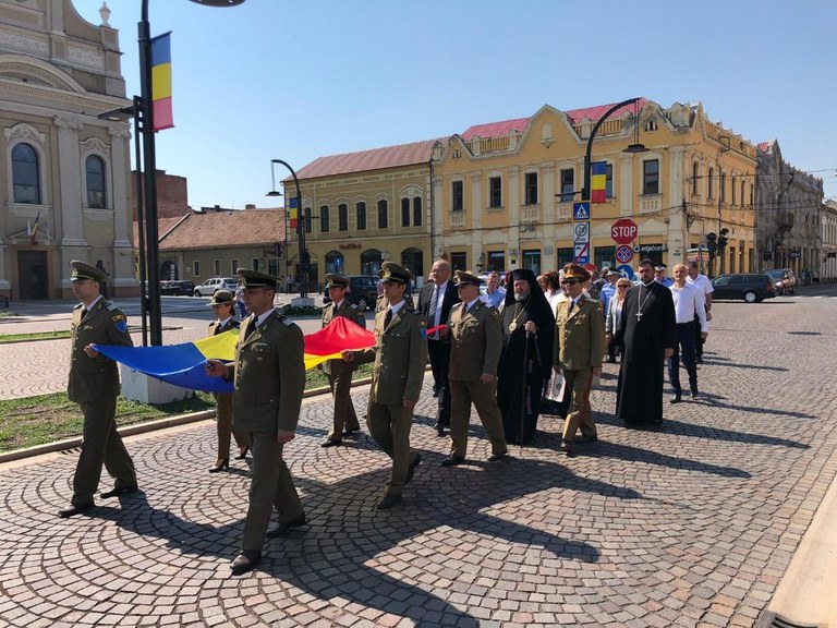 Cu binecuvântarea și în prezența Preasfințitului Părinte Sofronie, Episcopul Oradiei, preotul capelan al Garnizoanei Oradea și parohul enoriei Oradea-Centrală au oficiat slujba de sfințire a drapelului tricolor pe soleea catedralei, de față fiind și numeroase oficialități civile și militare, dar și credincioși din municipiul Oradea.