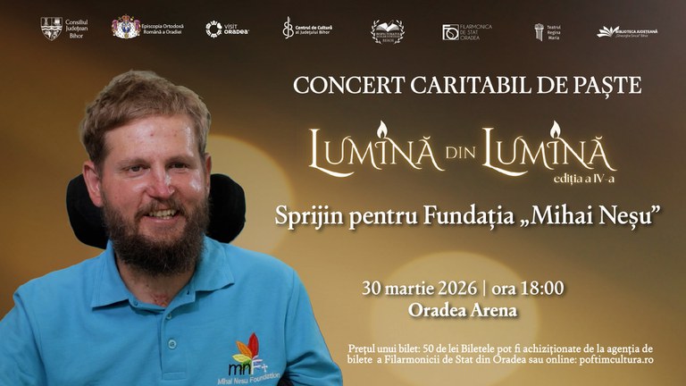 Concertul caritabil de Paște „Lumină din Lumină” va avea loc în data de 30 martie, începând cu ora 18:00, la Oradea Arena. Evenimentul își propune să aducă împreună comunitatea bihoreană într-un gest de solidaritate și sprijin pentru Fundația Mihai Neșu, organizație dedicată recuperării și îngrijirii persoanelor cu dizabilități.