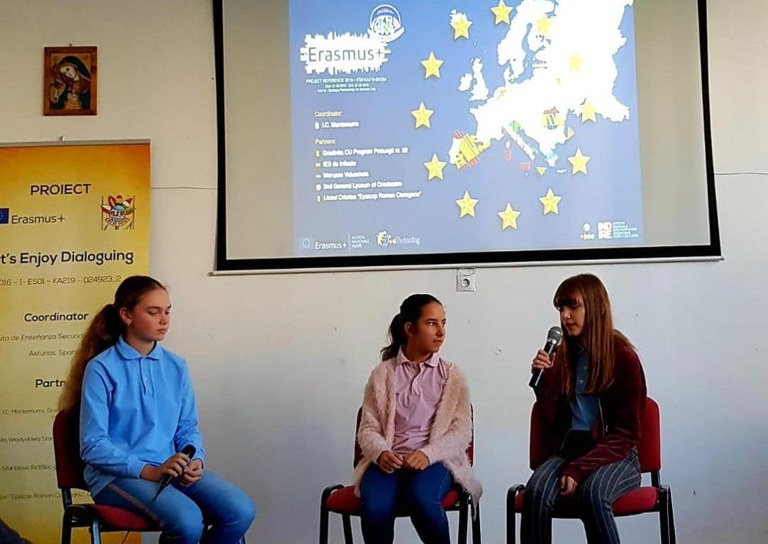 Un alt moment important al programului l-au ocupat interviurile cu elevi care au participat la mobilități Erasmus+ în țările partenere, Spania, Italia, Grecia, Letonia, Lituania, Polonia. Interviurile au fost realizate de către colegii lor, în limba engleză. Elevii ne-au relatat impresii din experiențele trăite în școlile partenere și i-au sfătuit pe colegii mai mici să participe cu încredere la aceste proiecte deoarece ele au impact pozitiv puternic asupra dezvoltării personale.