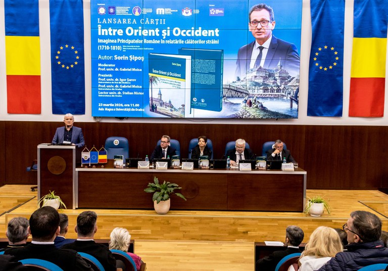 Într-o atmosferă academic distinsă și cordială, în ziua de luni, 23 martie 2026,comunitatea universitară orădeană a avut privilegiul participării la un eveniment editorial de înaltă ținută științifică: lansarea volumului semnat de istoricul Sorin-Domițian Șipoș, Între Orient și Occident. Imaginea Principatelor Române în relatările călătorilor străini (1710–1810), sub egida Editurii Universității din Oradea și Editura Academiei Române, Centrul de Studii Transilvane.