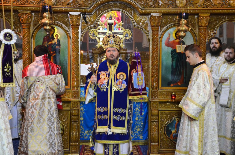 Cu acest prilej, Preasfinţia Sa a săvârşit Sfânta şi Dumnezeiasca Liturghie, în sobor de ieromonahi, preoţi şi diaconi, în biserica mare a mănăstirii, cu hramul „Adormirea Maicii Domnului”, în prezența obștii monahale a Mănăstirii „Sfânta Cruce” și unui mare număr de credincioși.