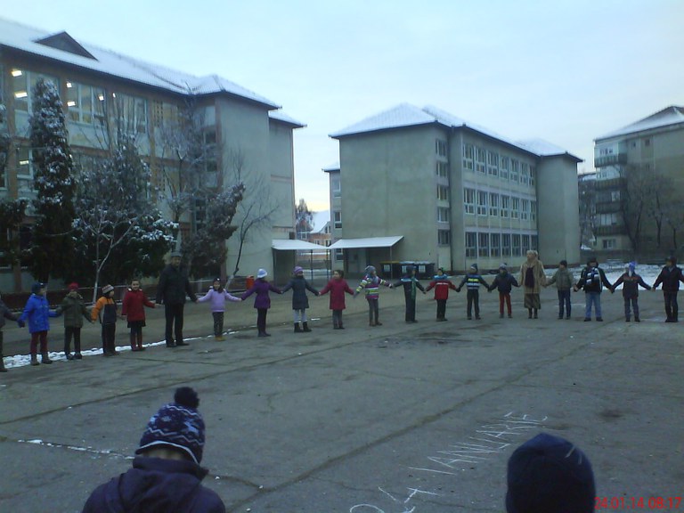 Cu sensibilitatea şi inocenţa specifică vârstei, elevii claselor a II-a A şi a II-a B, coordonaţi de învăţătoarele Viorica Brege şi Maria Tirpe, au desluşit înţelesurile evenimentului istoric din lectura Cuza Vodă şi Unirea, înţelesuri care au prins culoare, materializându-se într-o frumoasă expoziţie de desene tematice realizate de ei. Şi pentru a-şi exprima bucuria evenimentului aniversat, cu steguleţe în mâini, s-au prins şi ei într-o mare horă a unirii în curtea şcolii.