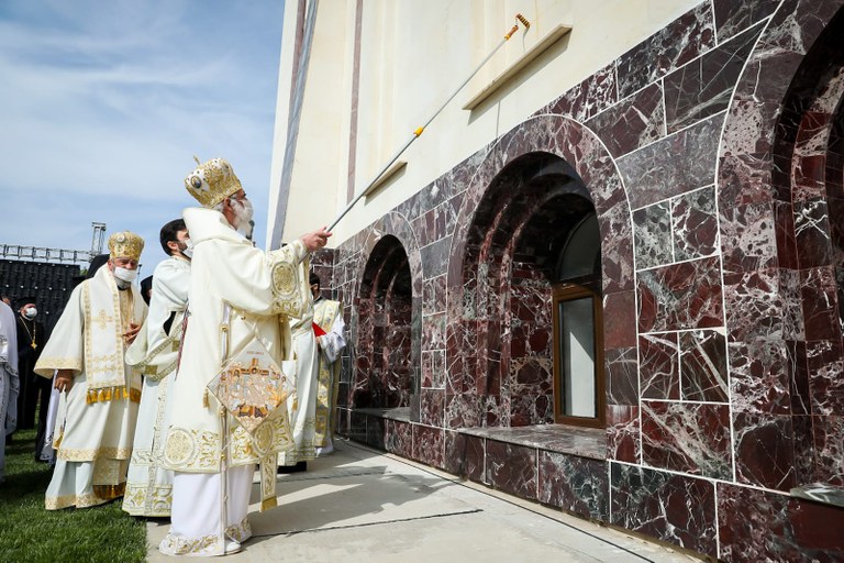 De la ora 11:00, Patriarhul Daniel a oficiat slujba de sfințire a noii Catedrale Episcopale, alături de alți 20 de ierarhi. Sfântul locaș are hramurile „Învierea Domnului” și „Sfântul Ierarh Andrei Şaguna, Mitropolitul Transilvaniei”.