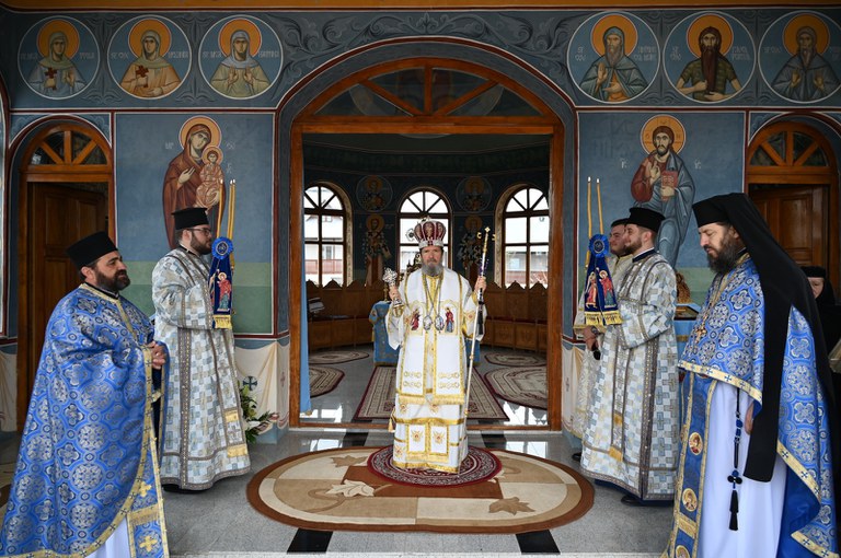 De praznicul Bunei Vestiri, când întreaga Biserică tresaltă de bucuria Veștii mântuitoare, a începutului unirii salvatoare dintre Cer și pământ prin Preasfânta Fecioară Maria, Preasfințitul Părinte Sofronie, Episcopul Oradiei, a săvârșit slujba Vecerniei unită cu Dumnezeiasca Liturghie a Sfântului Ioan Gură de Aur, după rânduiala sărbătorii, în ziua de 25 martie 2025, pe altarul de vară al Mănăstirii „Buna Vestire” din cartierul Episcopia Bihor din Oradea.