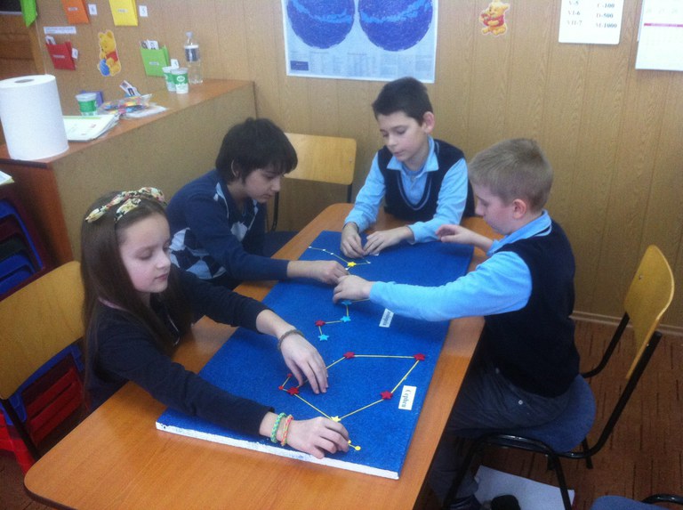 Partea practică a proiectului a constat în realizarea unor panouri cu constelaţiile învăţate. Pe baza schiţelor realizate de d-na prof. Pazmany Nicoleta, elevii au marcat poziţia stelelor, au trasat conturul constelaţiilor, au căutat informaţii despre culoarea şi mărimea stelelor şi le-au notat denumirile.