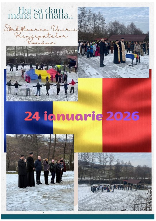 Cuvântul de binecuvântare a fost transmis de către părintele Laurențiu-Florin Brîndaș, consilier eparhial pentru Cateheză și activități cu tineretul, delegat al Preasfințitului Părinte Sofronie la acest eveniment, ocazie cu care a fost evidențiată semnificația profundă a actului Unirii Principatelor Române și subliniată legătura indisolubilă dintre credință, identitate națională și responsabilitatea transmiterii valorilor autentice către tinerele generații. Momentul festiv a continuat cu o alocuțiune susținută de domnul prof. univ. dr. Cosmin Patca, cadru didactic al Universității din Oradea, care a reliefat importanța istorică, culturală și spirituală a Unirii de la 1859, subliniind rolul determinant al Bisericii și al Școlii în formarea conștiinței naționale. Un moment deosebit de emoționant l-a constituit programul cultural-artistic prezentat de elevii Școlii Generale nr. 1 din Cuzap, sub îndrumarea doamnei profesor Grațiela Șipoș. Recitările, cântecele și momentele artistice au fost încununate de participarea tuturor celor prezenți la Hora Unirii, simbol al unității, al bucuriei și al speranței comune.