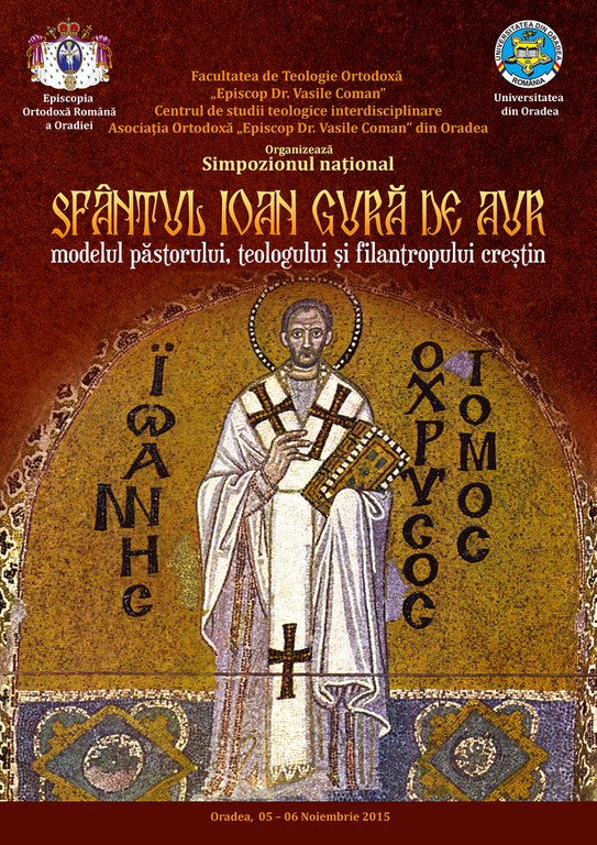 Cu binecuvântarea Preasfinţitului Părinte Sofronie, Episcopul Oradiei, Facultatea de Teologie Ortodoxă „Episcop Dr. Vasile Coman” a Universităţii din Oradea, organizează în perioada 5-6 noiembrie 2015, Simpozionul naţional cu tema „Sfântul Ioan Gură de Aur - modelul păstorului, teologului și filantropului creștin”. Manifestarea întregește șirul conferințelor organizate de facultatea orădeană, încadrându-se în același timp în seria de evenimente organizate cu prilejul proclamării de către Sfântul Sinod al Bisericii Ortodoxe Române a anului 2015 ca „Anul omagial al misiunii parohiei şi mănăstirii azi“ şi „Anul comemorativ al Sfântului Ioan Gură de Aur şi al marilor păstori de suflete din eparhii“.