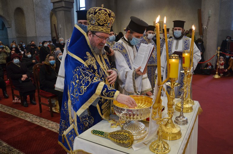 Mult iubitul praznic împărătesc al Botezului Domnului, Boboteaza, 6 ianuarie 2021, a fost prăznuit de credincioșii care s-au adunat în număr mare la Catedrala Episcopală Învierea Domnului din Oradea prin participarea la Sfânta Liturghie arhierească și la Slujba sfințirii Agheasmei celei Mari, oficiate de Întâistătătorul Eparhiei Oradiei, Preasfințitul Părinte Sofronie, înconjurat de soborul slujitorilor Catedralei.