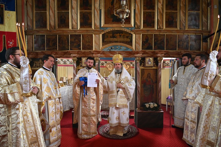 În cadrul sfintei slujbe, Părintele paroh Traian-Sorin Suciu a fost hirotesit de către Chiriarhul Oradiei întru sachelar.