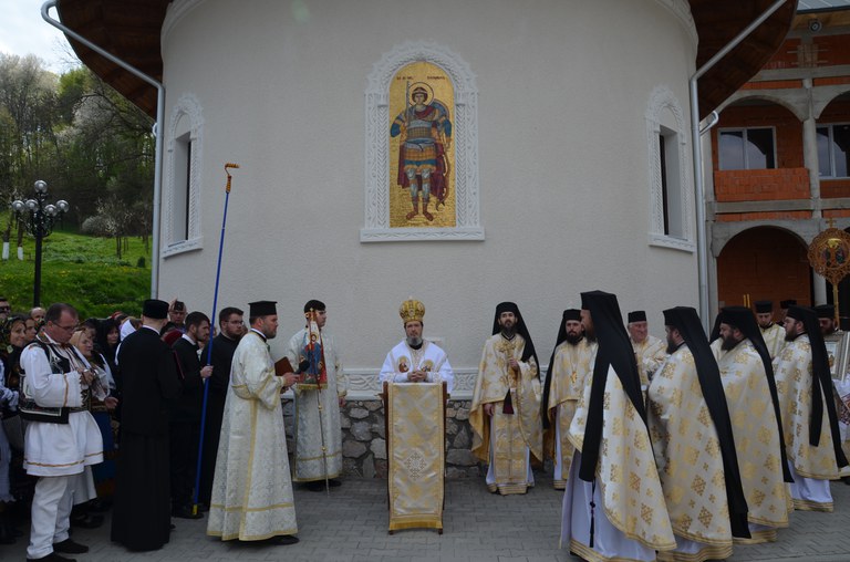 După ce în Vinerea luminată a fost prăznuit unul din hramurile Mănăstirii Izbuc, Izvorul Tămăduirii Preasfintei Născătoare de Dumnezeu, următoarea zi, în ajunul serbării Sfântului Mare Mucenic Gheorghe Purtătorul de biruință, 22 aprilie 2023, la vremea ceasului al nouălea din zi, Preasfințitul Părinte Sofronie, Episcopul Oradiei, a prezidat slujba de sfințire a noii biserici din incinta așezământului monahal, care, astfel, va deveni locul sfânt al săvârșirii celor șapte laude ale Bisericii din cursul săptămânii. Frumosul lăcaș de închinare este închinat sărbătorii Așezării moaștelor Sfântului Mare Mucenic Gheorghe Purtătorul de biruință în Lida Palestinei, Sfântului Mucenic Fanurie, Marele Făcător de Minuni, Sfântului Ierarh Sofronie, Patriarhul Ierusalimului, Sfântului Cuvios Siluan Athonitul și Sfântului Cuvios Sofronie Athonitul.
