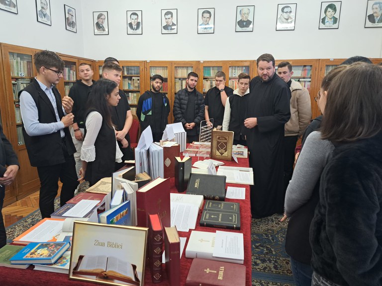 Astfel, pe parcursul zilei de vineri, 11 noiembrie, toți elevii claselor de liceu de la profilul teologic și filologic au avut ocazia să vizualizeze și să admire expoziția, având posibilitatea să vadă nu doar evoluția tipăririi Dumnezeieștii Scripturi sau a altor cărți de cult, ci chiar și a limbii române, fiind impresionați de trecerea de la alfabetul chirilic la cel latin și de felul în care „suna” limba română cu secole în urmă.