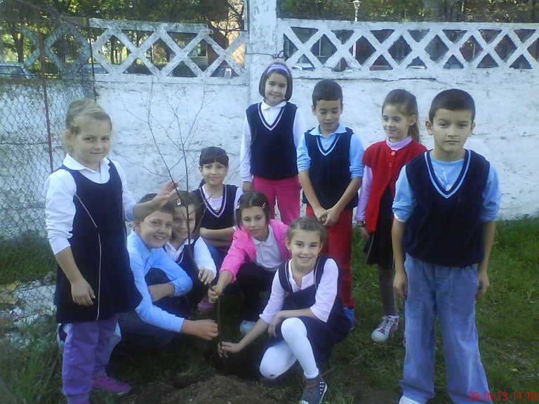 Dar nu a fost doar unul! Sprijiniţi de Direcţia Silvică Bihor, prin Dl. ing. Mircea Faur şi Dl. ing. Relu Mihalache, care au oferit materialul săditor, copiii au plantat în curtea şcolii mai mulţi puieţi de brad, stejar, mesteacăn şi tei. Mânuţele mici ale prichindeilor au fost ajutate de elevii de gimnaziu şi personalul auxiliar care au „aderat” cu toţii la această activitate. Si cum soarele dulce de toamnă a fost şi el alături de noi, totul „a înverzit” foarte repede.